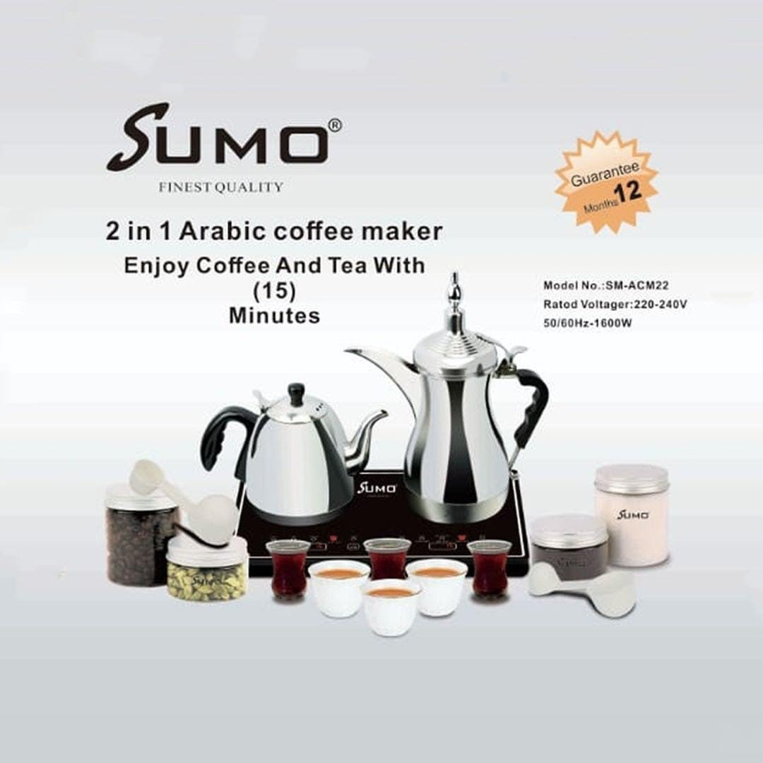 دلة كهربائية لتحضير وتسخين القهوة العربية والشاي 2×1 من سومو بقوة 1600 واط مع إستكنات وعبوات
