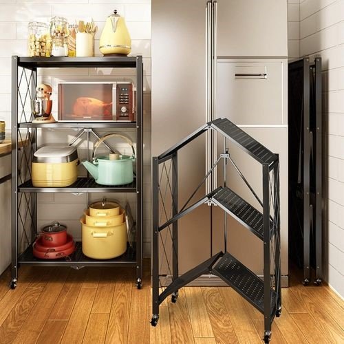 4 عجلات، يمكن للعربة الدوارة 360 درجة أن تنزلق بسهولة إلى الداخل والخارج في المساحات الصغيرة، مما يجعل عربة التخزين مريحة للانتقال إلى أي جزء من منزلك.