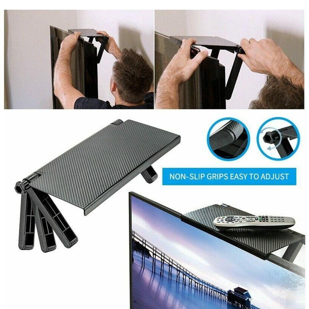 – تثبيت سهل بدون أدوات ما يحتاج دريل ولا براغي، بس افتح الأرجل وثبّته فوق الشاشة… وخلاص! صار جاهز!