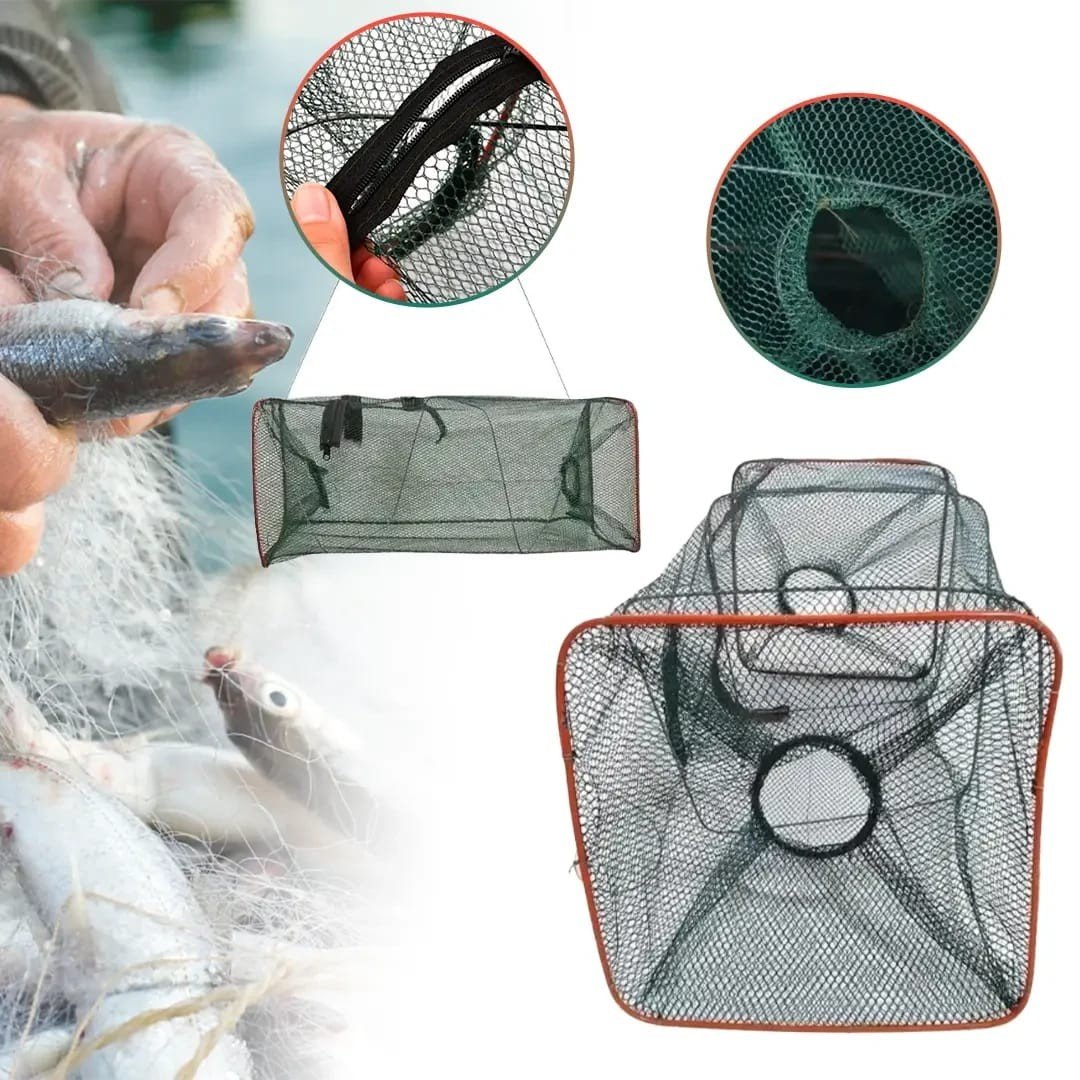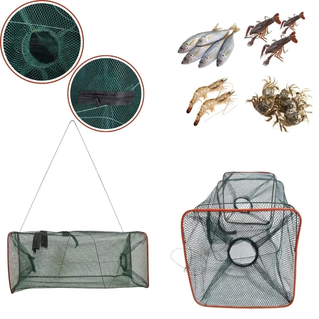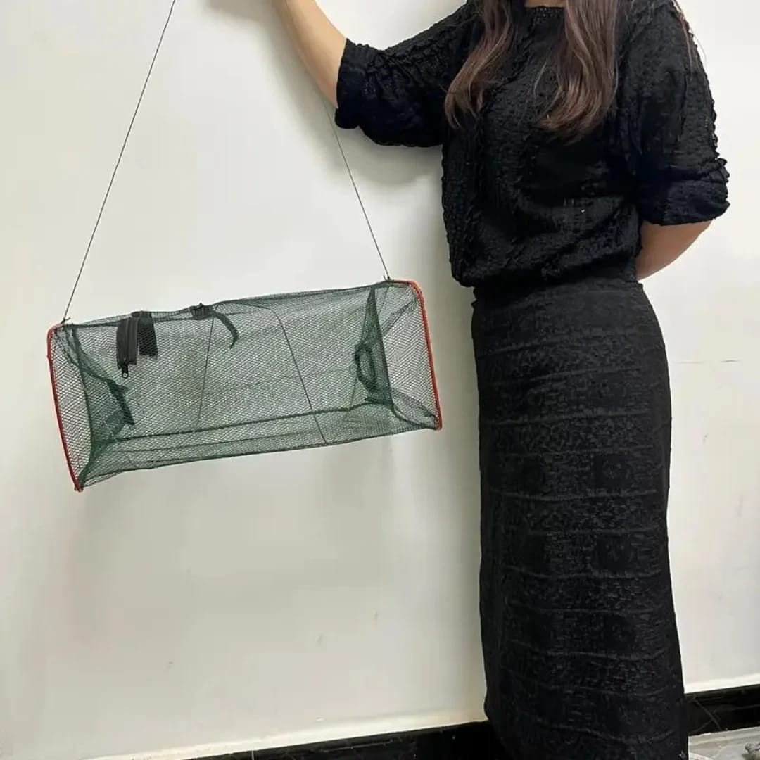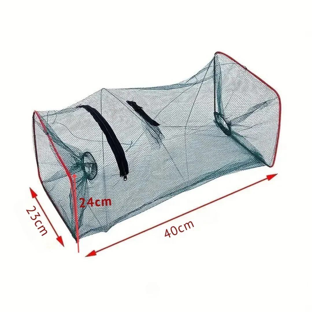 مصممة بسحابين الصغير لوضع الطعم والكبير لاستخراج الأسماك سهلة الاستخدام بتصميم ذكي ببساطة ضع الشبكة في الماء، انتظر لبضع ساعات، ثم استرجع صيدك.