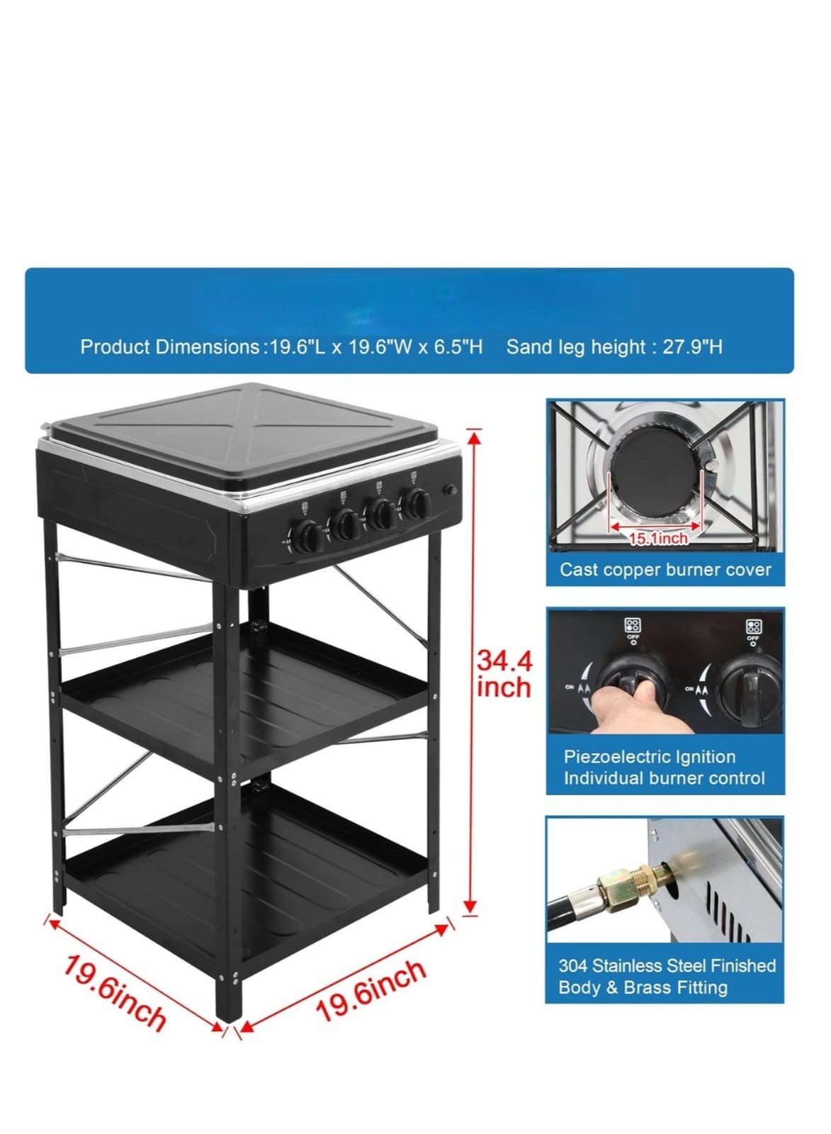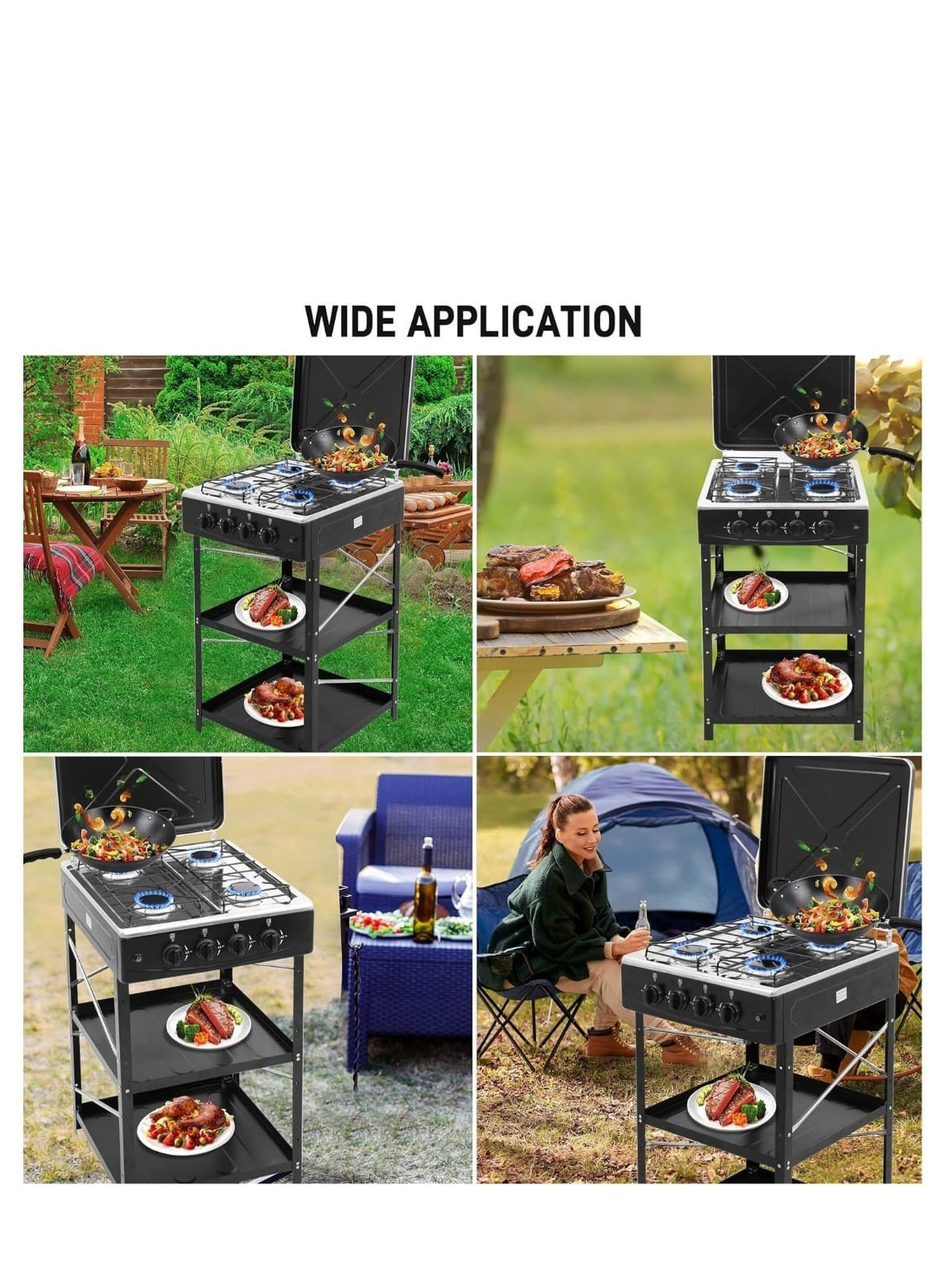 ● شعلات قوية تتميز الشعلات الأربع بقوة نارية عالية، مما يضمن طهي الطعام بسرعة وكفاءة.