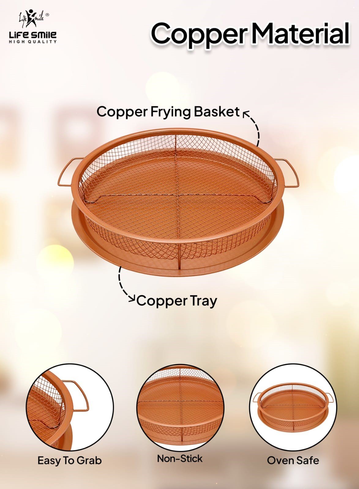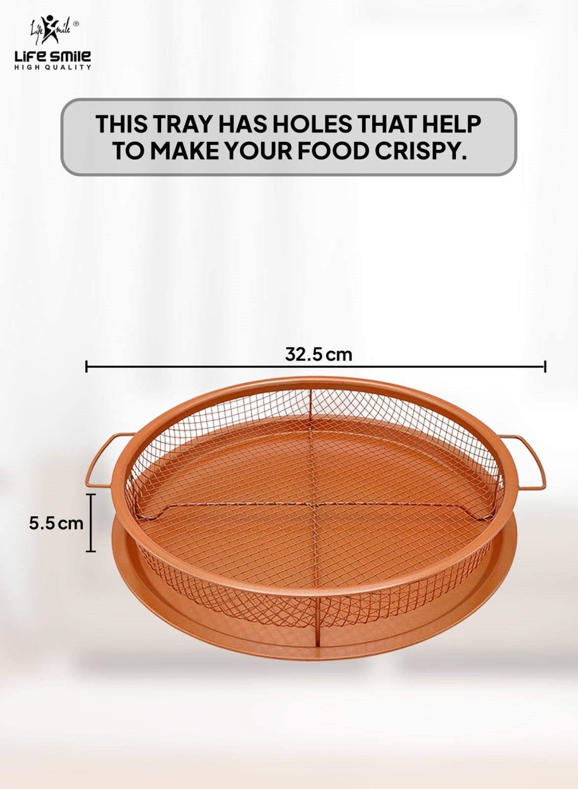تُستخدم للقلي الصحي في الفرن، حيث تسمح بتدوير الحرارة حول الطعام لتحقيق قرمشة مثالية دون الحاجة إلى الكثير من الزيت. تحتوي على طبقة غير لاصقة معززة بالماس لتسهيل إخراج الطعام وتنظيفها بسهولة. تتكون من صينية شبكية مرتفعة وصينية سفلية، مما يسمح للحرارة بالوصول إلى كل زاوية من الطعام. آمنة للاستخدام في غسالة الأطباق ومقاومة للحرارة حتى 500 درجة فهرنهايت (260 درجة مئوية).