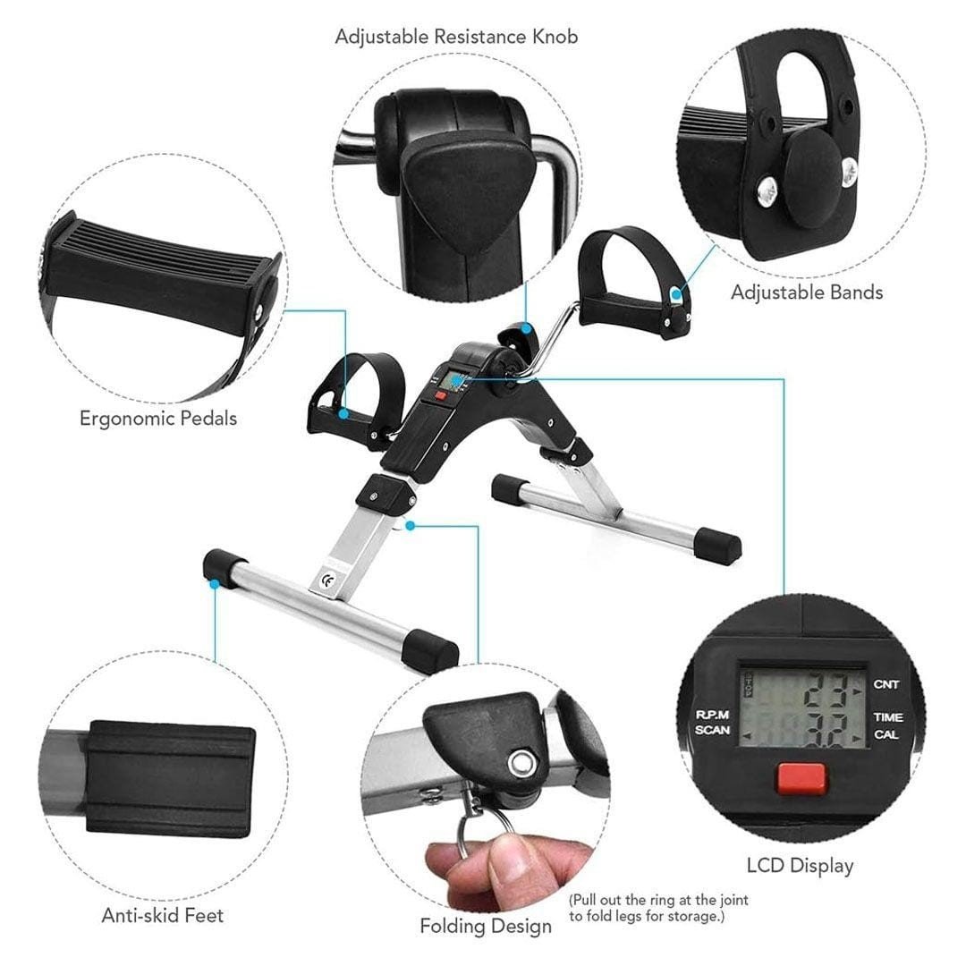 - دراجة تمارين الساق بشاشة LCD تعرض نبضات القلب وعدد الجلسات وعدد السعرات الحرارية المفقودة. تم تصميم الدواسة القابلة للطي بدواسات لضمان ثبات قدميك أو ذراعيك أثناء التمرين.