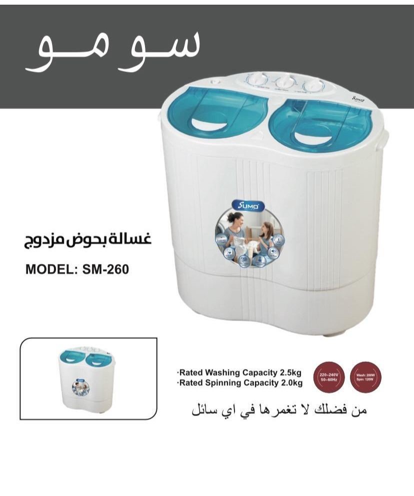 اجعل غسيل الملابس تجربة مريحة وسهلة مع غسالة SUMO SM-260. احصل عليها الآن من متجرنا وودع متاعب الغسيل وراءك!