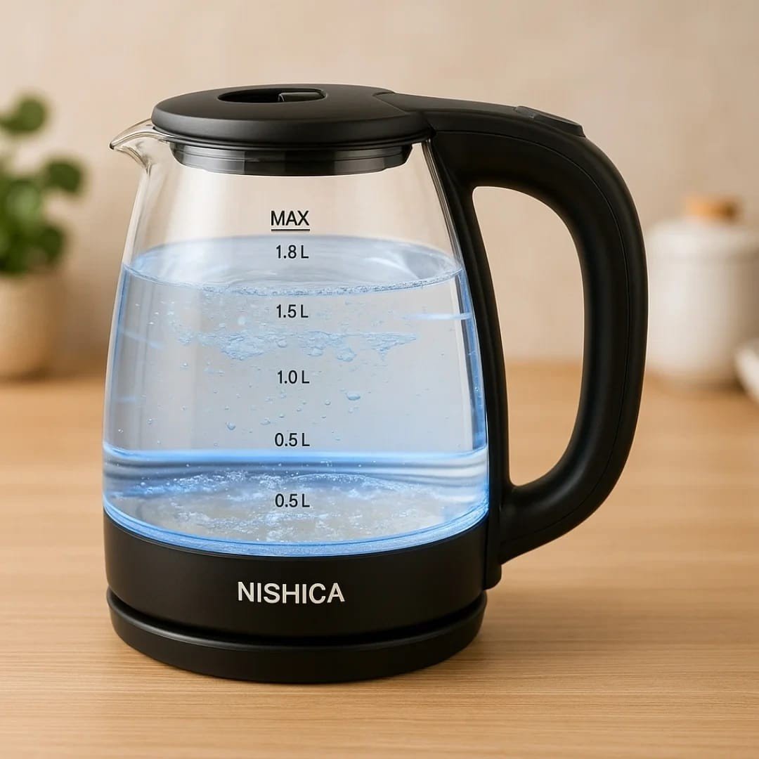 الصندوق: غلاية + دليل المستخدم مع غلاية NISHICA… استمتعي بمشروباتك الساخنة بأمان وأناقة يومياً