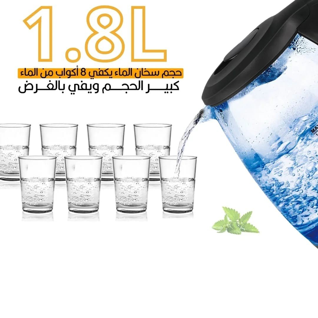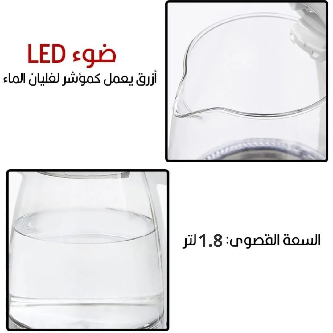 إضاءة LED أثناء التشغيل تضفي لمسة جمالية عند الغلي، مع خاصية الإغلاق التلقائي تحمي الجهاز من السخونة الزايدة أو الغليان الجاف.