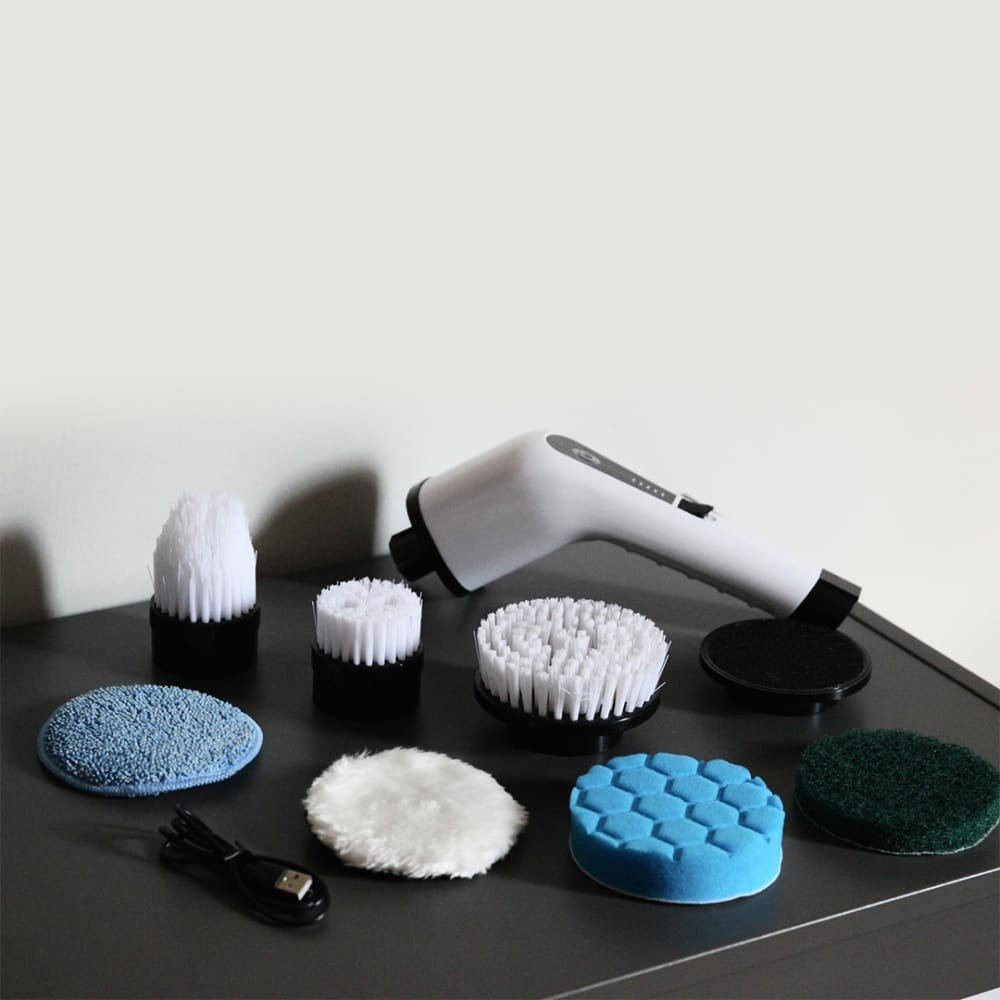 تأتي الفرشاة مع 7 رؤوس تنظيف متعددة الأغراض يمكن استخدامها لتنظيف أسطح مختلفة في المطبخ والحمام مثل أحواض الاستحمام، والمواقد، والجدران، والأرضيات، والسيارات.