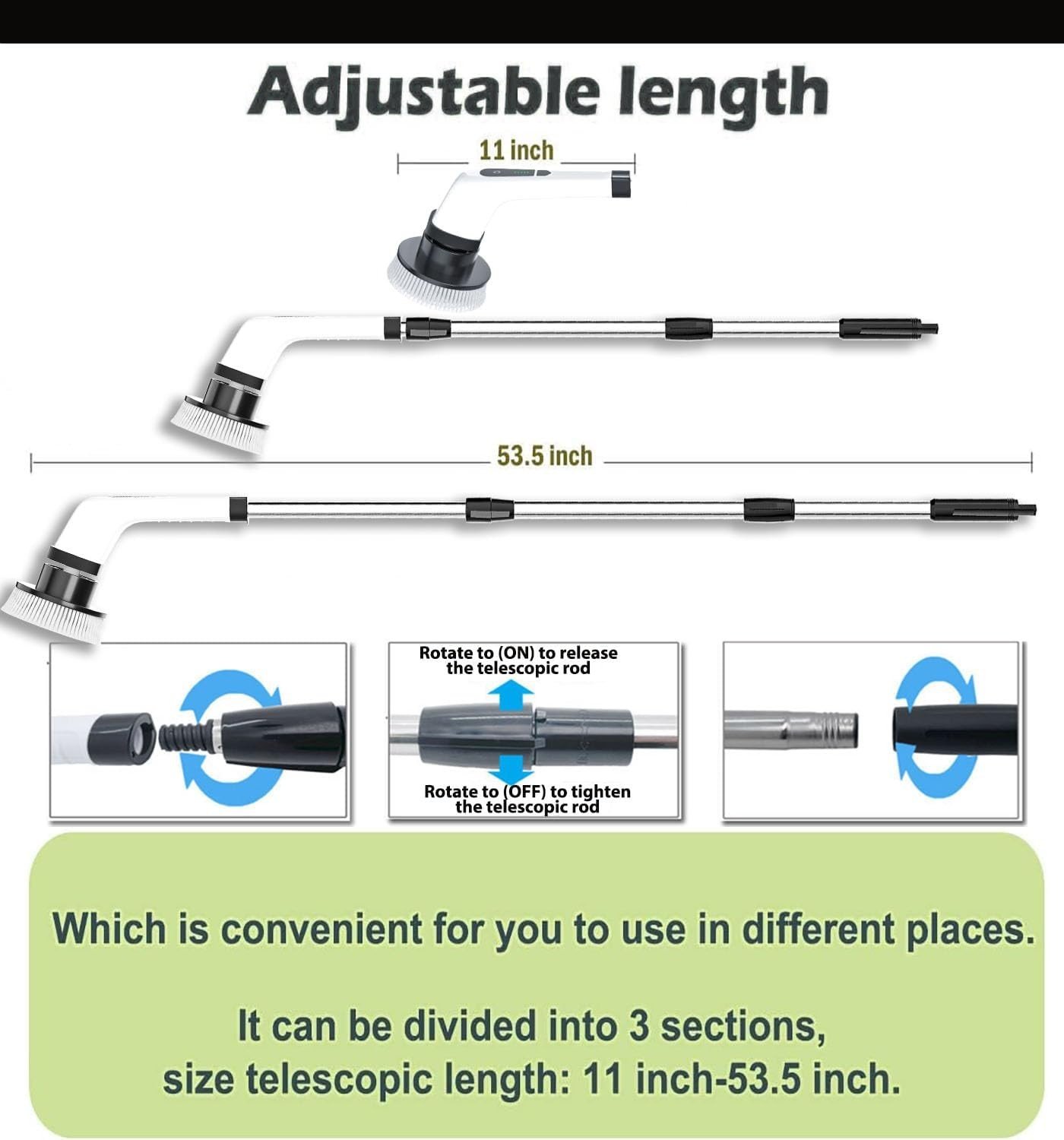 يمكن تعديل طول المقبض من 25 إلى 44 بوصة (حوالي 63.5 إلى 111.76 سم) لتنظيف الأماكن البعيدة دون الحاجة للانحناء.